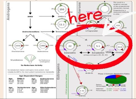 Denne klient producerer fx lidt for meget østradiol og østriol (referencerammerne er de 2 stjerner på hver cirkeldiagram)